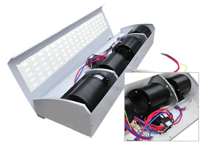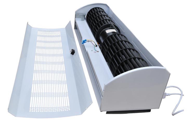 貫流風幕機,通過風機帶動葉輪產生風量