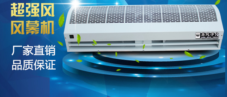 風幕機是通過風輪的轉動產生的強大氣流,送出一定速度和溫度的幕狀氣流,形成一面無形的門簾。該機安裝在制冷、空調、防塵、隔熱的商場、劇院、賓館、飯店、會議廳、冷藏庫、手術室及家居等門口上方,啟動該機,能把室內外的空氣隔開,起到即出人方便,又能防止室內外冷熱空氣交換,保持室內溫度的恒定,同時還可阻擋灰塵、昆蟲的進入及有害氣體、異味的擴散。